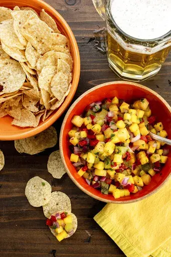 Popular salsa variations include peach, mango, pineapple, black bean and corn, avocado, and green tomatillo.