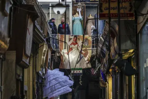 In the Syrian capital’s bustling old marketplace, crowds of people pack the narrow passageways as the country's new de facto flag is draped over the crowded stalls. Merchants say the atmosphere is pleasant and celebratory, but nobody is buying anything.