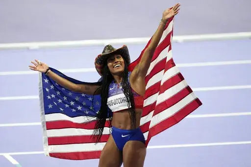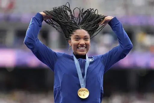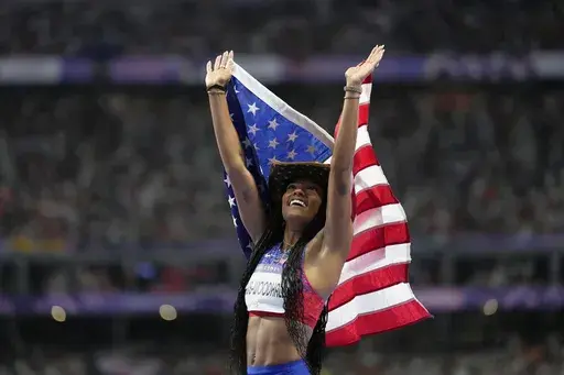 In one of the most colorful performances at the Paris Games, the 25-year-old American jumped 23 feet, 3 1/2 inches (7.10 meters) on her fourth try Aug. 8 to win the gold. She celebrated by donning her trademark cowboy hat and dancing with hurdles champion Sydney McLaughlin-Levrone, who wore a tiara. For Davis-Woodhall, the gold medal was the reward for a year’s worth of doubling down on better living — more focused workouts, a cleaner diet and a strict adherence to a demanding schedule.