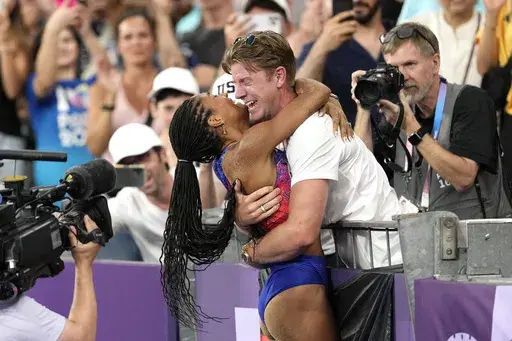 The Associated Press followed Davis-Woodhall and her husband, Hunter, in the run-up to the Paris Games.