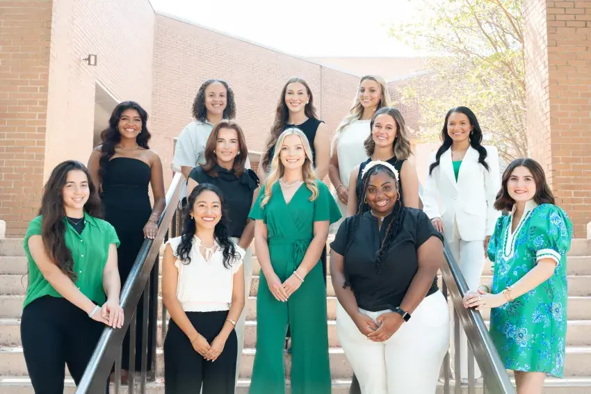 UAM’s 2025 Homecoming Court. Front row (left to right): Bruna Silva, Maria Fernanda Arellano, Robbi Joanne Freeman, Le’Aundreea Makell Cameron, Emma Kathryn Scott. Middle row (left to right): Xiomara Molina, Paige Nicole Stanley, Bryleigh Marie Bickers, Kaiden Jalei Hale. Back row (left to right): Alivia Jewel Cook, Reese Wilhite, Ronnie Hope Johnson.