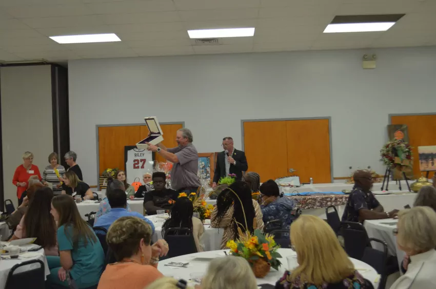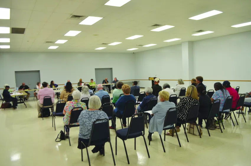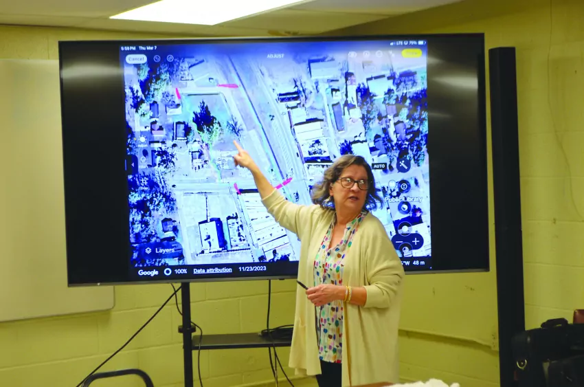 Linda Weatherford shows the Founder’s Day celebration site on North Main Street at the the Community and Economic Development Committee at Fire Station #2 on Choctaw Street March 7, 2024. Meeting participants volunteered for a variety of committees. Weatherford said they still need volunteers to help set up the event. (Clarion Photo By Linna Jones) Photo credit: Linna Jones, Copyright 2023 Emmerich Newspapers, Inc.