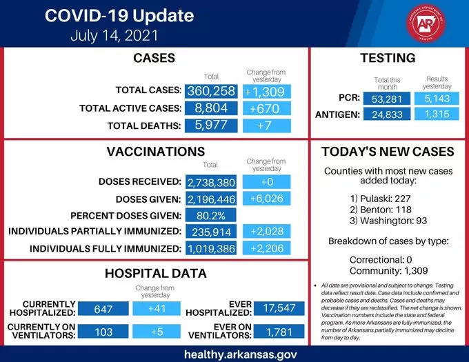 As we continue to see a rise in COVID-19 cases across the state, including variants of concern like the Delta variant, it is crucial that all Arkansans ages 12 and up get the vaccine. The vaccine is the best way to protect yourself and reduce the spread of COVID-19.