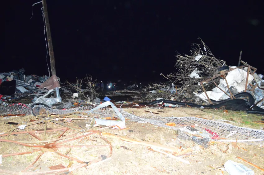 Pictured left is what remains of a Rolling Fork business along Highway 61. The Enterprise-Tocsin tracked the monster storm last Friday evening and was able to capture this image, and others, moments after the devastating tornado destroyed the south Delta town. Pictured to the right is the former Duncan Gin in Inverness, captured by former E-T publisher Jim Abbott the day after a similar twister hit Inverness on February 21, 1971. The tornado that hit Inverness was classified as an EF5, while the preliminary ranking for the long track tornado last Friday night is an EF4, according to the National Weather Service. More coverage appears on Pages 10-14.