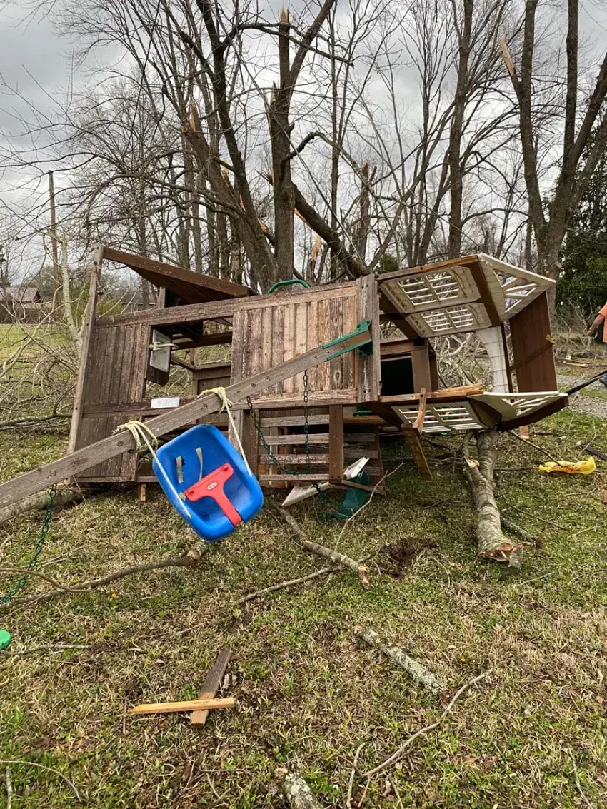 Beth posted to Facebook after the tornado passed that it “was NO JOKE. Been in the bathtub, came over our house. Water sucked out of sinks and toilets. House shaking. Our barn is gone. Most of it in the pool. Trees down. Debris everywhere. I’m scared to death. Please Lord keep us safe.”