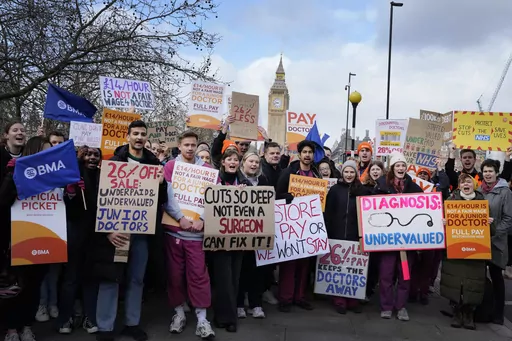 The British Medical Association, the doctors' trade union, says pay for junior doctors has fallen 26% in real terms since 2008, while workload and patient waiting lists are at record highs. The union says burnout and the U.K.'s cost-of-living crisis are driving scores of doctors away from the public health service.