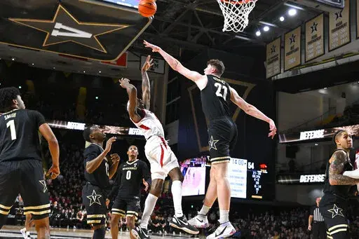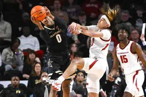 Myles Stute had 15, and Trey Thomas added 13 in a chippy game that featured three reviews with a Flagrant 1 for Arkansas and Vanderbilt guard Ezra Manjon ejected before halftime.