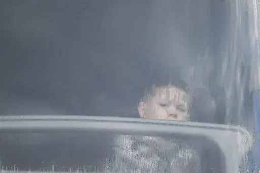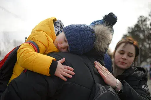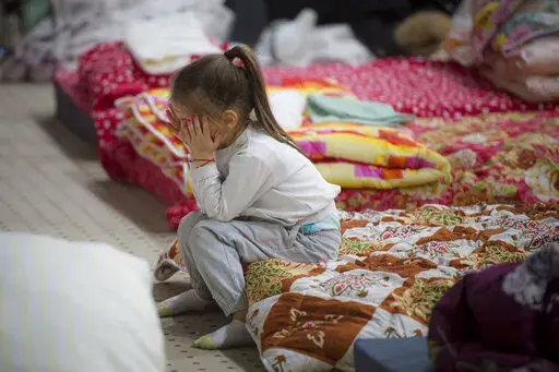 SIRET, Romania (AP) — Sitting with her teenage daughter in a hotel foyer in northern Romania, 38-year-old Viktoriya Smishchkyk breaks down in tears as she recounts her departure from Ukraine.
