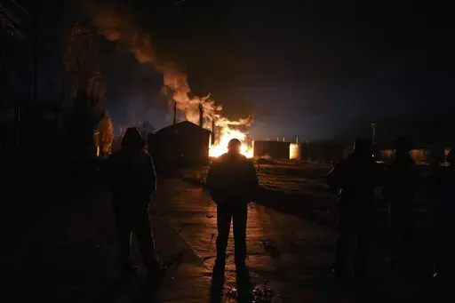 On Saturday evening, two missiles struck an oil depot in Kherson — the first time a depot was hit in the city since the Russians withdrew, according to firefighters. Associated Press reporters saw a blazing fire and thick black smoke at the scene. Firefighters said the Russians stole firetrucks and ambulances as they retreated, leaving local authorities scrambling for resources to respond to attacks.